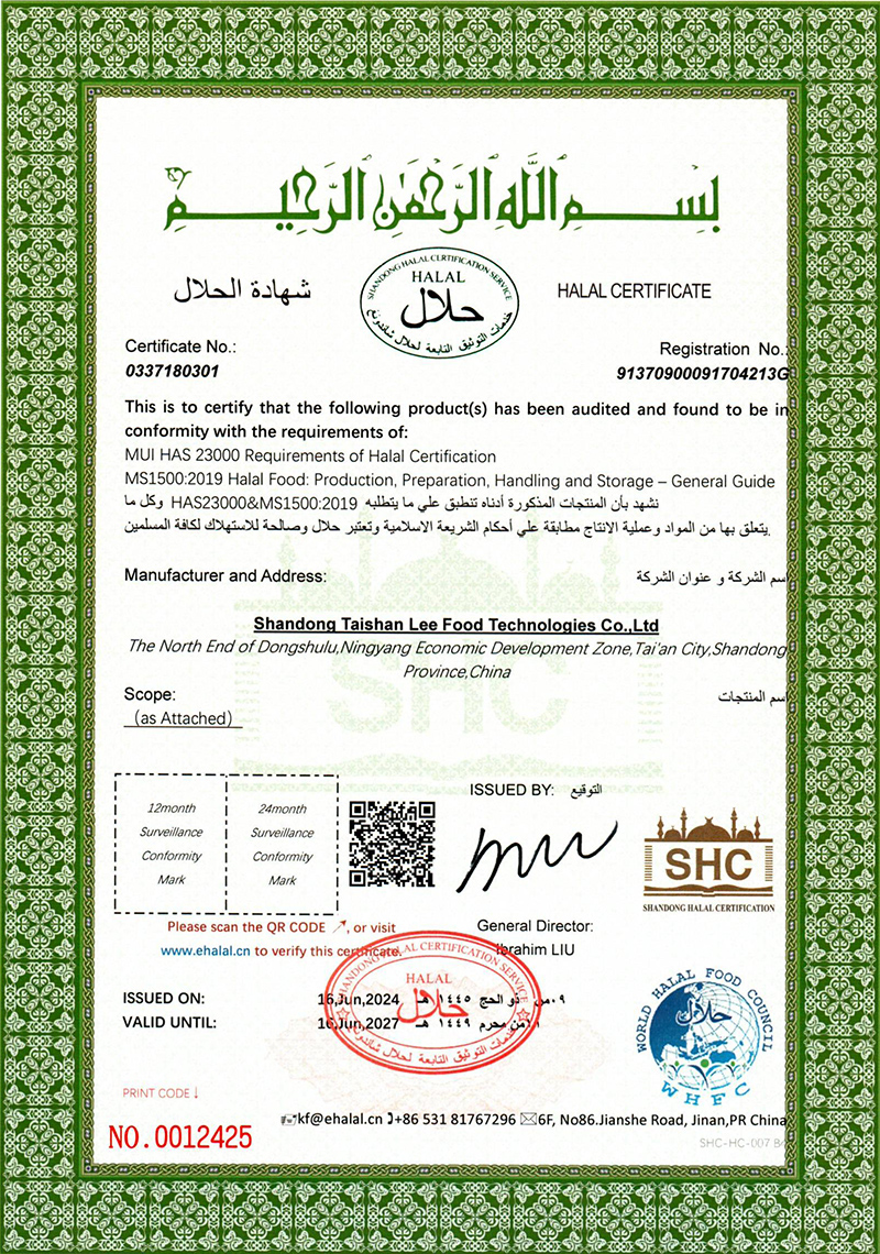 Copyright ? 2018 Shandong Taishan Lee Food Technologies Co.,Ltd All Rights Reserved.   Tel:+86-538-5861890