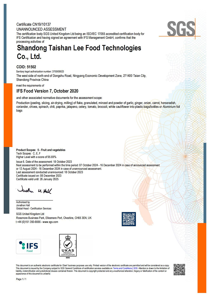 • Web:www.taishanleefood.com