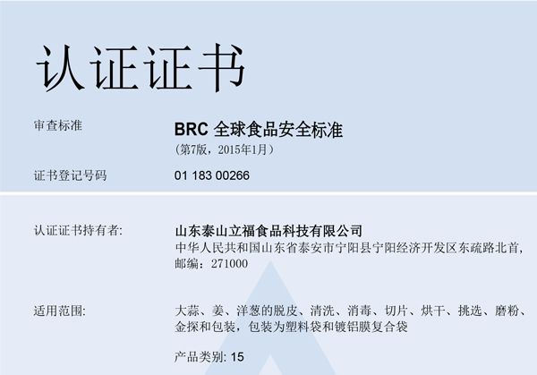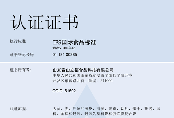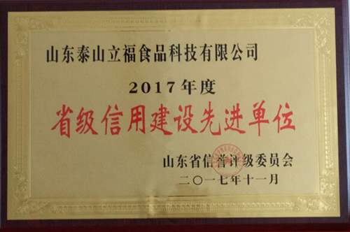 2017年11月,山東泰山立福食品科技有限公司榮獲省級信用建設先進單位、榮獲山東省信譽評級委員會AAA信用等級、中誠聯合(北京)信用評級中心AAA信...