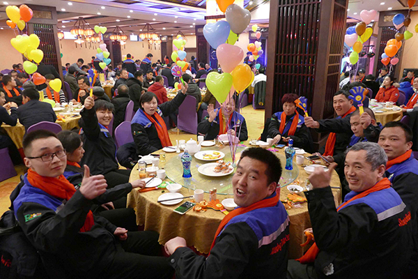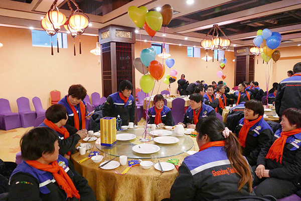2018年的鐘聲即將敲響,山東泰山立福食品科技有限公司在這個辭舊迎新的時刻,全體職工齊聚一堂,慶祝新春佳節。!2017是豐收的一年,全體員工在領導的正確領導下,在各方人士的支持下,全員全年完成超額目標,可喜可賀。在這個隆重的時刻,我們共同努力爭取2018年再創佳績。